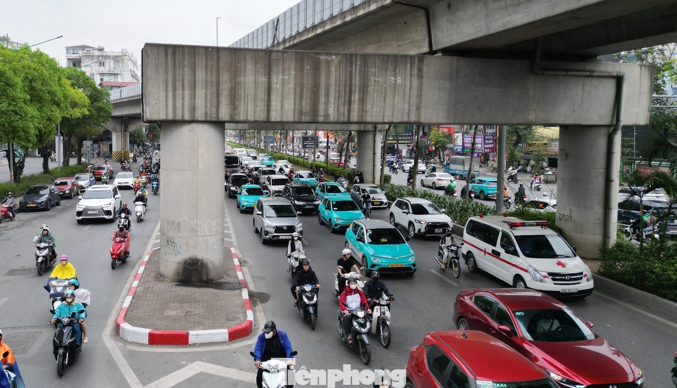 Trong chiều 17/3 và sáng 18/3, ùn tắc từ vị trí hàng rào kéo dài đến tận nút giao Ngã Tư Sở.