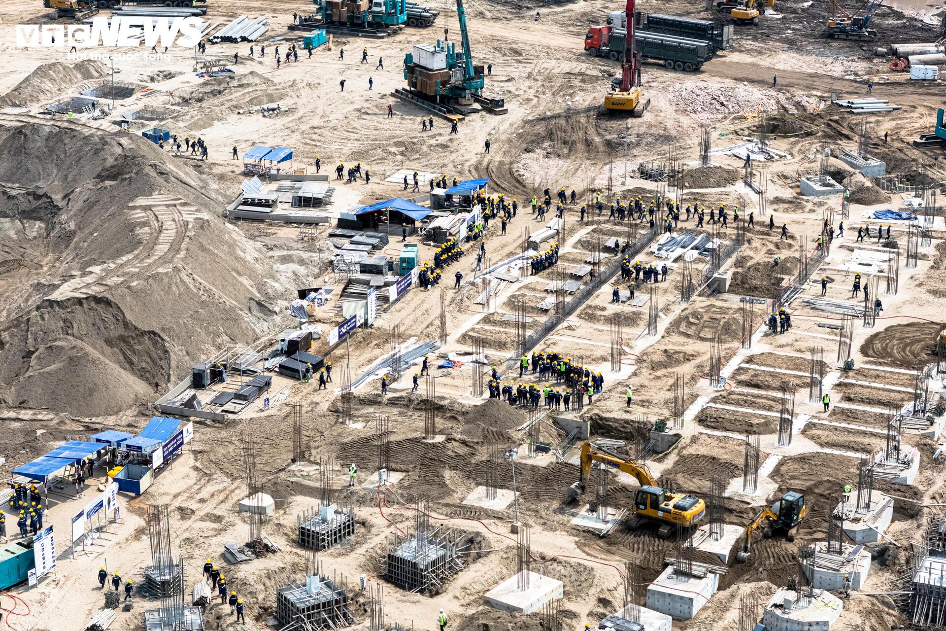 Theo ghi nhận của phóng viên báo điện tử VTC News trong những ngày giữa tháng 3, khu vực triển khai dự án đã hình thành một đại công trường với mật độ thi công cao. Hàng loạt máy xúc, máy ủi hoạt động liên tục, trong khi xe tải trọng lớn ra vào tấp nập để vận chuyển đất đá. Tại nhiều vị trí, các hạng mục đào đắp, hạ cốt nền và san lấp mặt bằng đang được triển khai đồng loạt.