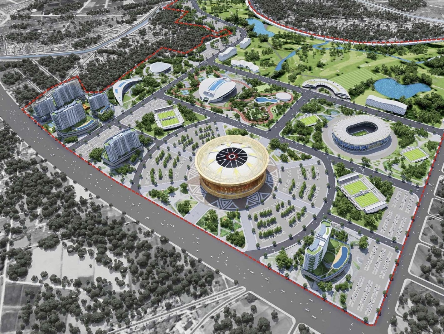 Trong tổng thể đó, sân vận động Trống Đồng được coi là “trái tim” của dự án. Công trình có sức chứa thiết kế khoảng 135.000 chỗ ngồi, gấp gần 3 lần sân Mỹ Đình hiện nay. Nếu hoàn thành đúng quy hoạch, sân Trống Đồng không chỉ vượt qua Rungrado 1st of May Stadium mà còn trở thành sân vận động có quy mô lớn nhất thế giới.
